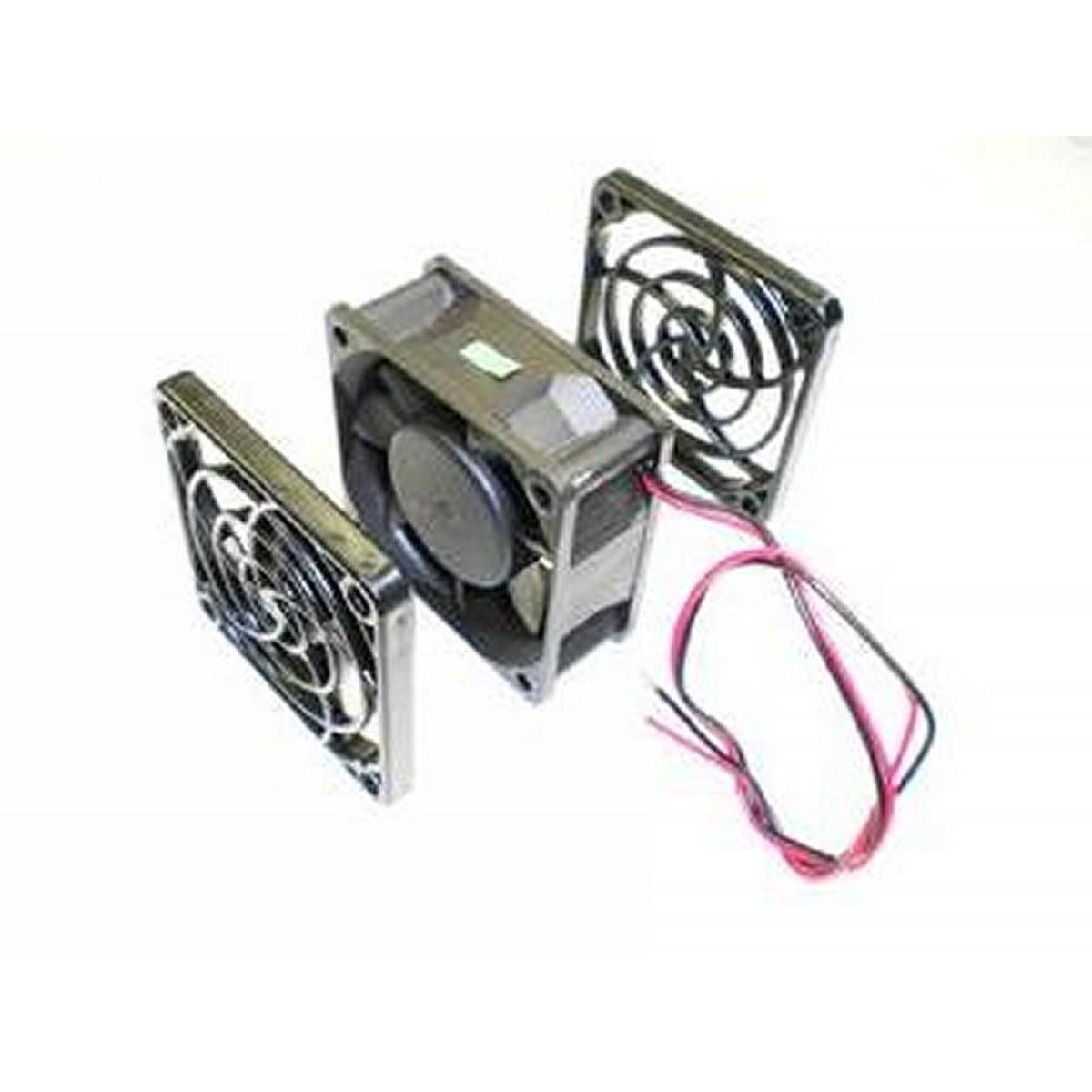 Thermostat-controlled 2″ fan, installed in the barrier between the fridge and freezer sides of an icebox.