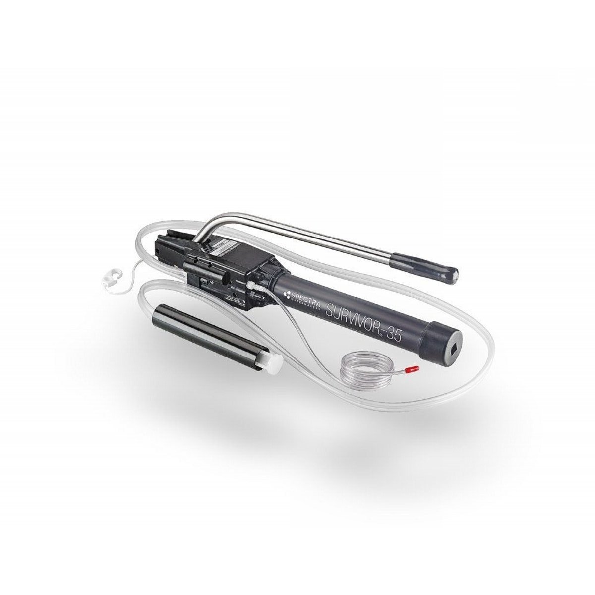 Used by U.S. and international military groups, voyagers, and adventurers worldwide, the Survivor 35 serves as the emergency water maker in life rafts, aircraft, and ditch kits. At only 7 lbs (3kg), it is light enough to carry aboard any vessel. It does not rely on electricity and can provide 1.2 gallons or 4.5 liters of fresh water per hour. The Survivor 35 is approved by the U.S. Coast Guard, and a practical alternative to carrying heavy emergency water stores.