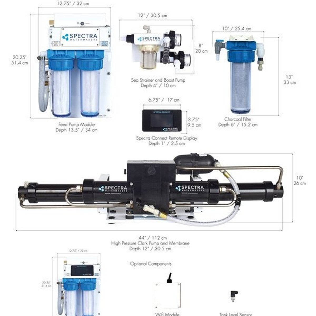 The Newport 400c is the most energy efficient, automated, and easy-to-use water maker available, and comes with the new Spectra Connect controller as standard! The Spectra Connect allows you to operate and monitor your water maker from a remote device, and has new added features like the Fill Tank mode, or a customizable Auto Run mode, One-Touch Sensor Calibration, and suggested maintenance intervals displayed on the dashboard, taking the guesswork out of operation and upkeep! The Newport 400c operates on as little as 15 watts per gallon (4 watts per liter), making it possible to run your system on a small generator, solar, wind, or straight off the batteries. Multi-speed capacity allows machine operation on high mode for maximum product flow or low mode for maximum efficiency, making it ideal for onboard power management.