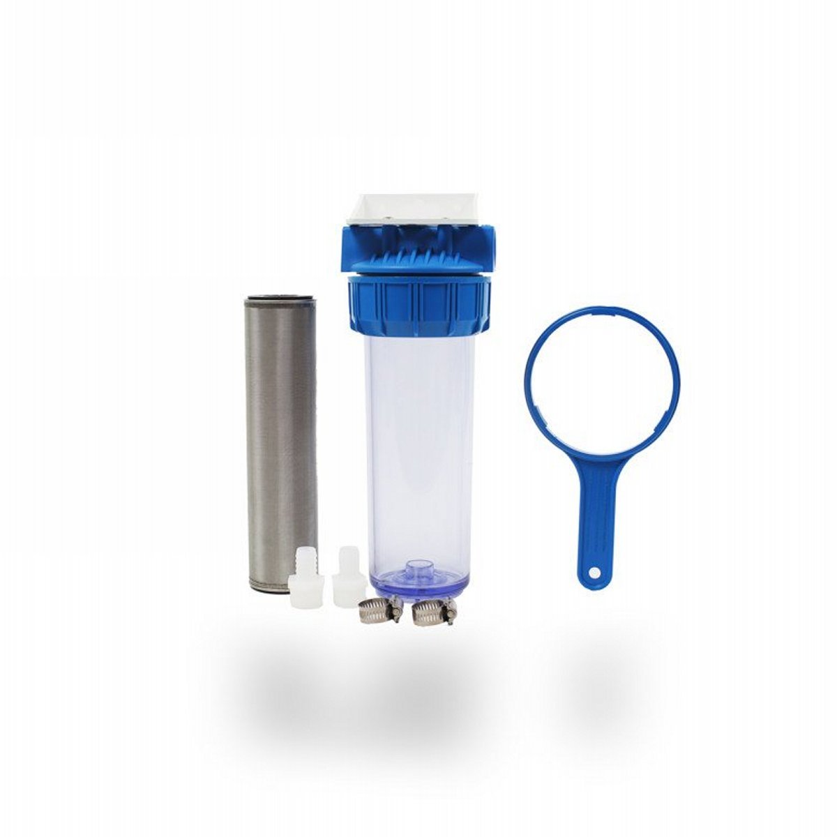 This stainless steel, washable filter with housing will reduce the loading on your watermakers disposable cartridge filters.