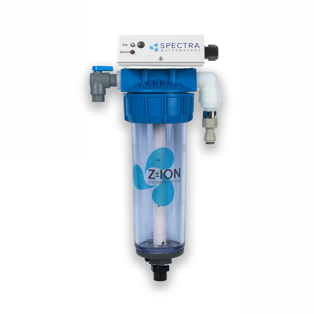 The Z-ION Protection System floods your water maker with silver/copper ions that collect in the filters and membranes to prevent the microbial deterioration of the filter media and membrane. Z±ION prolongs the service life of the filters and membranes without the use of aggressive chemicals.